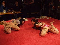 This form of bondage is seldom used in Western bondage. However, in Japanese bondage (Japanese: shibari), it is an important aspect, possibly originally having evolved from a religious tradition, where the interest is in the restrained partner’s spiritual situation rather than their corporal situation.